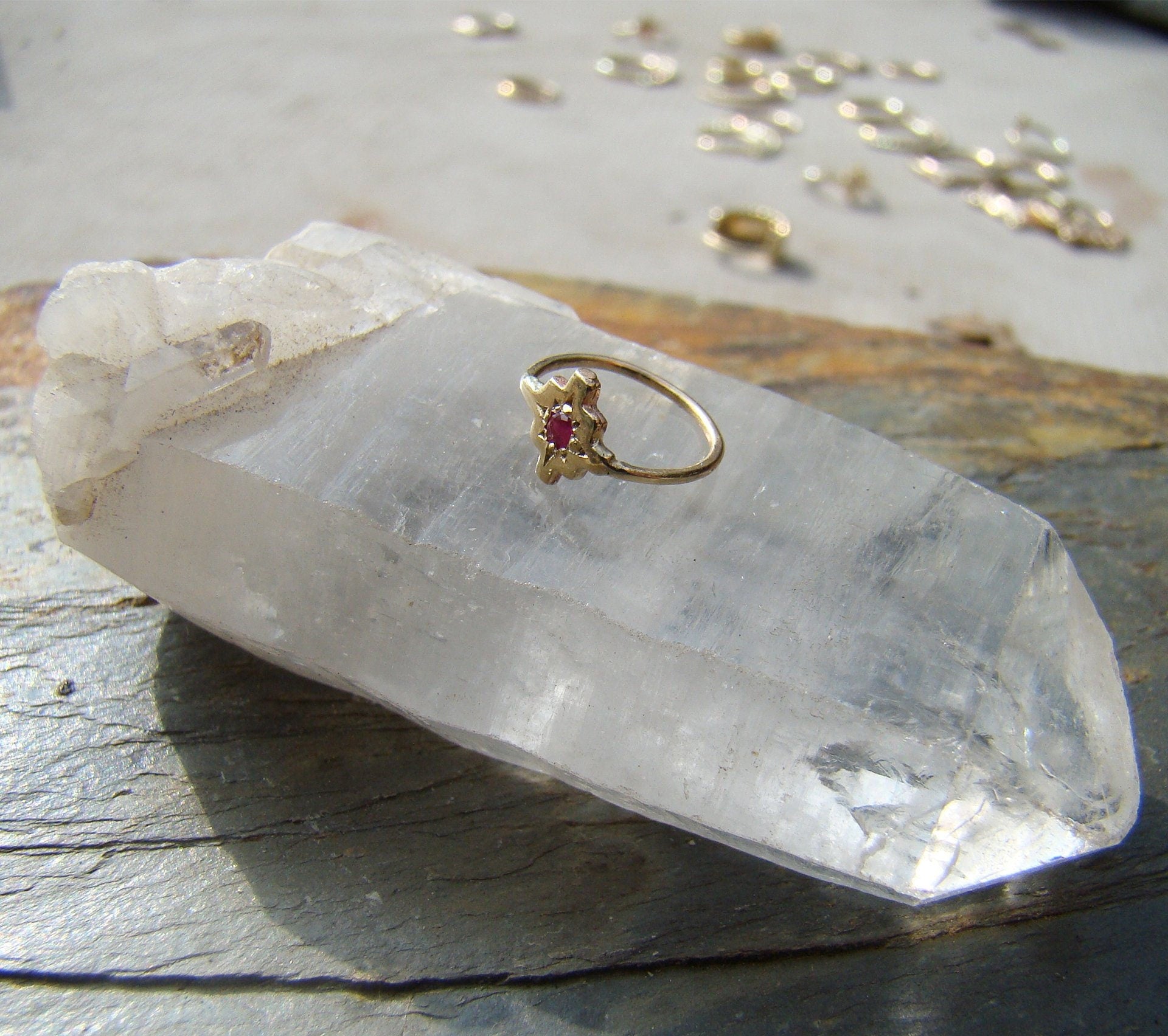 נזם חישוק לאף צ'אקאנה זהב עם רובי